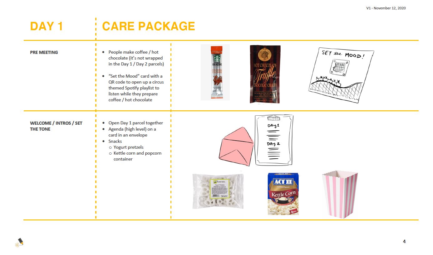 Draft of how conference box content would align with Sephora’s agenda