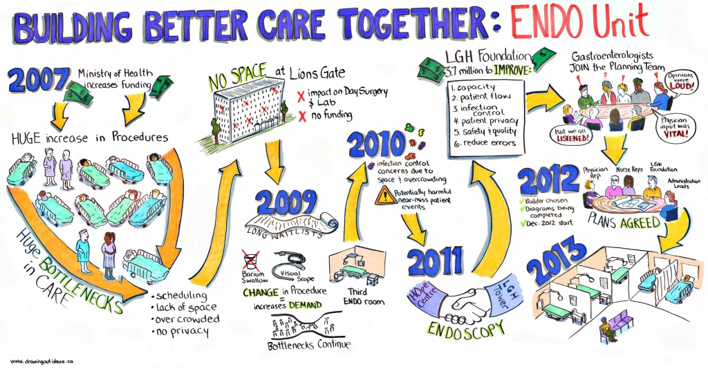 Many people assume that graphic recorders are artists who create beautiful murals. Some of us are, and our style of graphic recording reflects that. But many business and government clients are looking for a balance between visuals and content.
