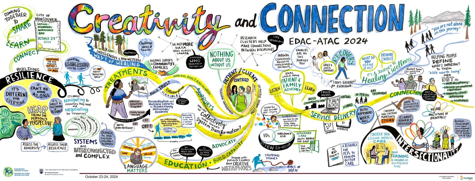 We also captured themes from across the conference in one large Knowledge Wall graphic recording. This wove together learnings from presenters, research, and insights from the audience.