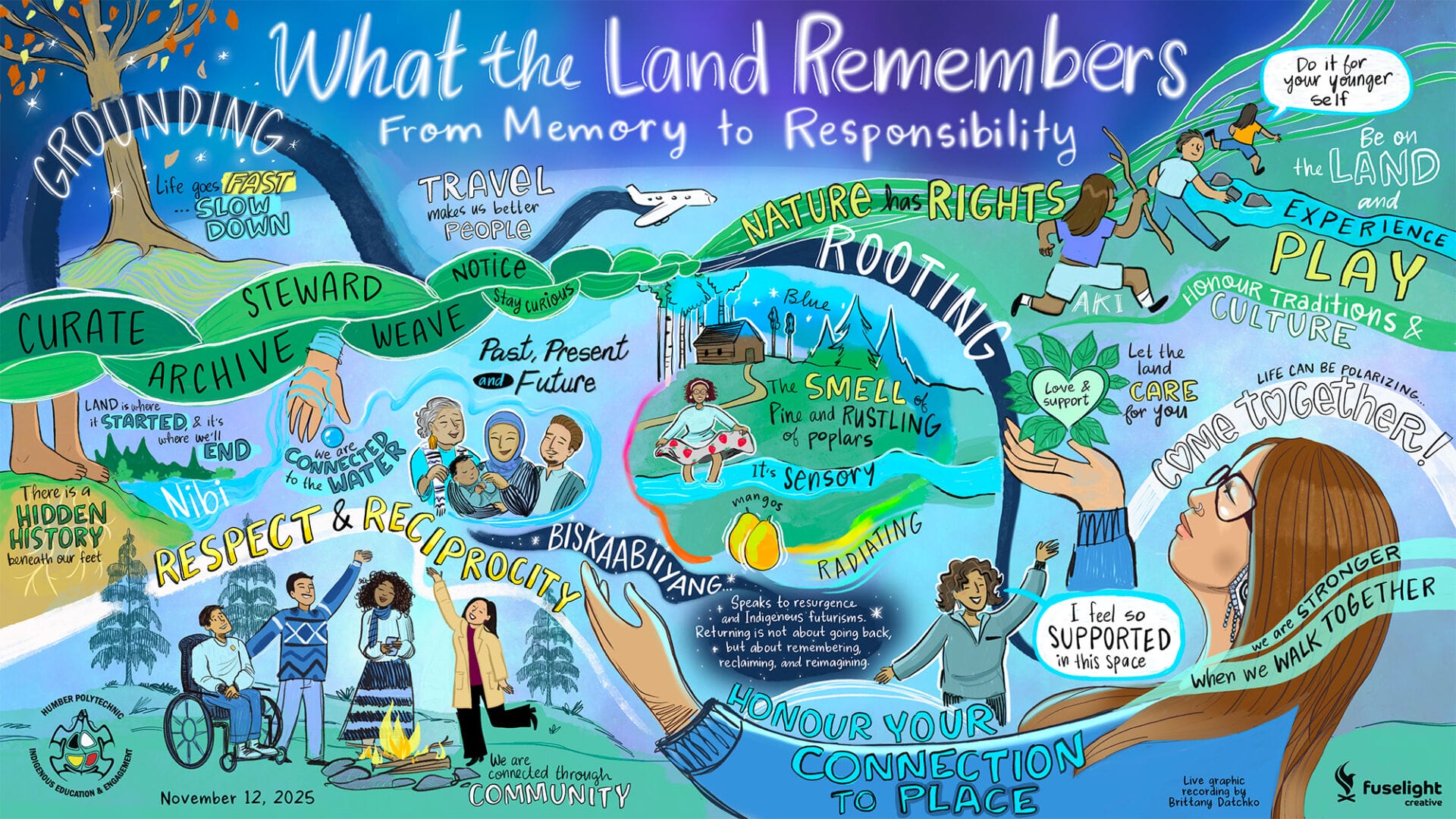 At the “What the Land Remembers: From Memory to Responsibility” workshop hosted by Humber Polytechnic’s Indigenous Education & Engagement team, participants gathered for a guided conversation on the deep connections between land, memory, and home. Over the course of the session, attendees shared personal “artifacts” — stories, images, and items from places of meaning — to find commonalities and build a collective living archive.