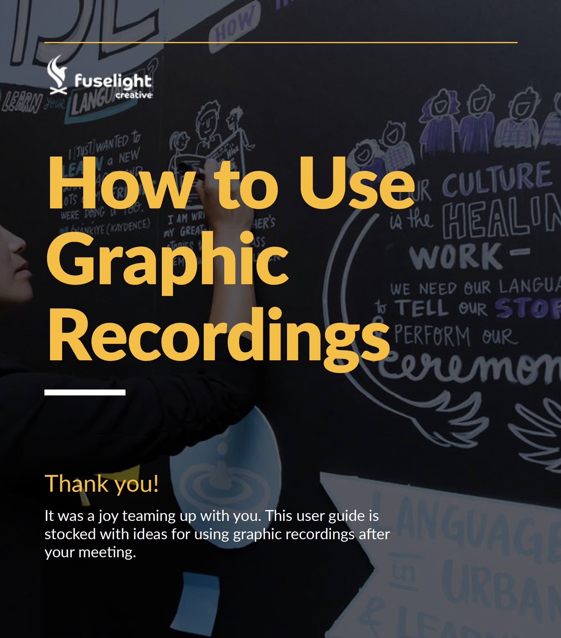 For digital graphic recording, we provide a complimentary time-lapse video of the graphics being drawn (see examples here, and here).